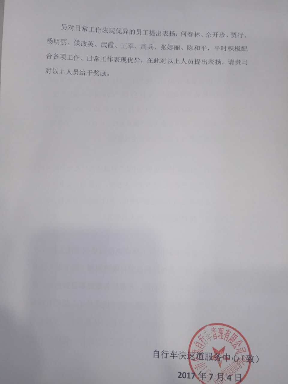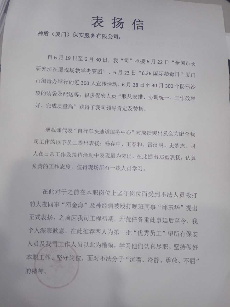 近日,一批在自行车快速道默默奉献的我司保安员被厦门市自行车快速道服务中心通报表扬。