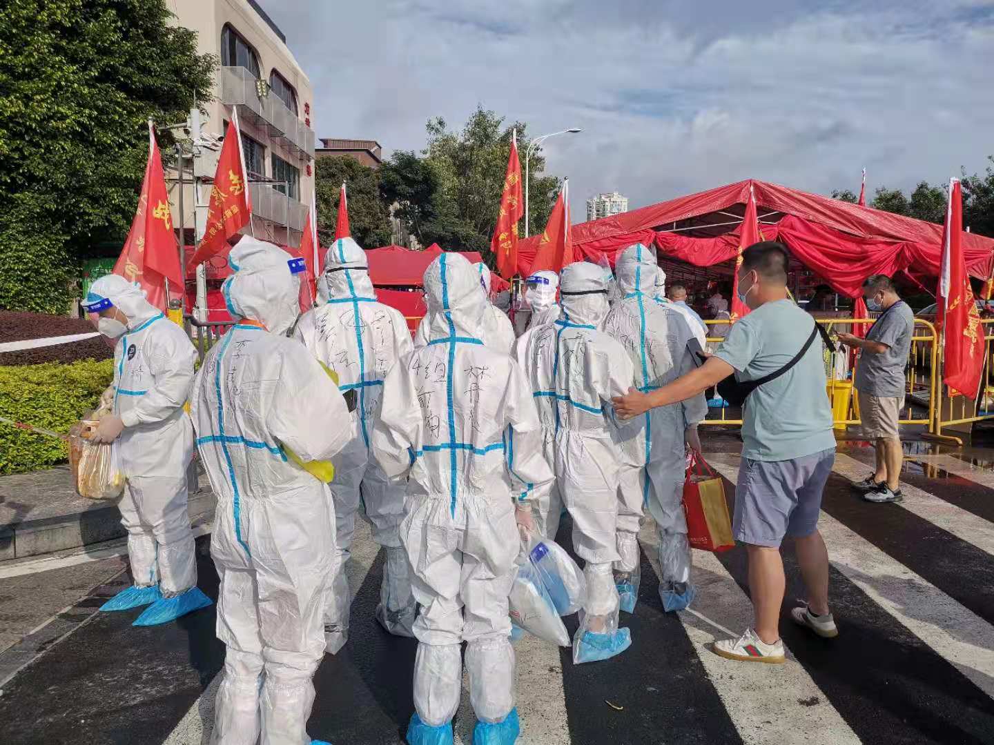 7月30日,在我市思明区前埔村附近,发现一例新冠病毒阳性患者。市委、市政府高度重视,积极开展疫情防控工作,为彻底阻断病毒的传播,市委、市政府决定,对前埔部分小区进行封闭管理。神盾(厦门)保安服务有限公司临危受命,克服人手紧张等困难,通过调整安保力量,抽调90名保安员前往前埔村,在当地政府和公安机关的指导下,进行安保防控。