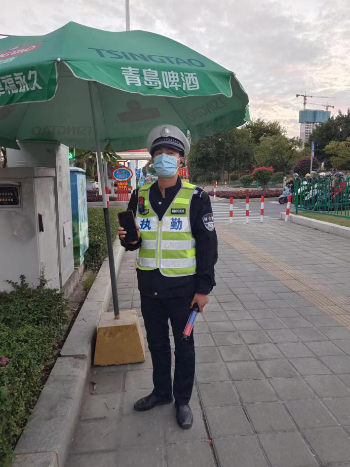 11月9日,神盾(厦门)保安服务有限公司派驻同安祥平交警中队的辅警叶翔宇和往常一样在烧灰路执勤。17时27分,烧灰路路口的一部手机吸引住叶翔宇的目光,他捡起手机环顾四周并未发现失主。因手机设有密码,无法从手机上获取失主的有效信息。为了能及时归还手机至本人,叶翔宇只好在原地等待可能会回来寻找手机的失主,或者等电话铃声响起便可同通话人沟通让其拿回手机。
